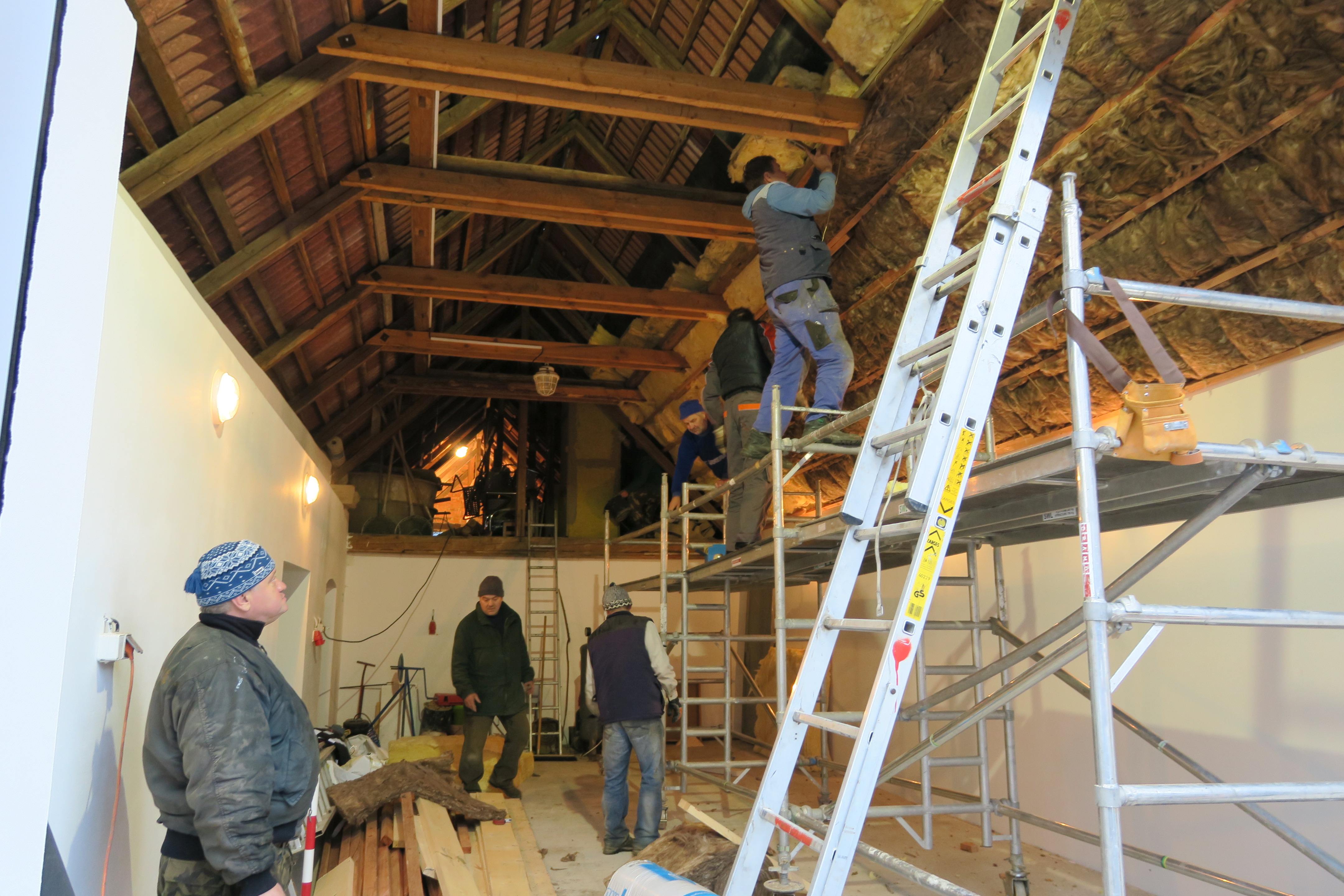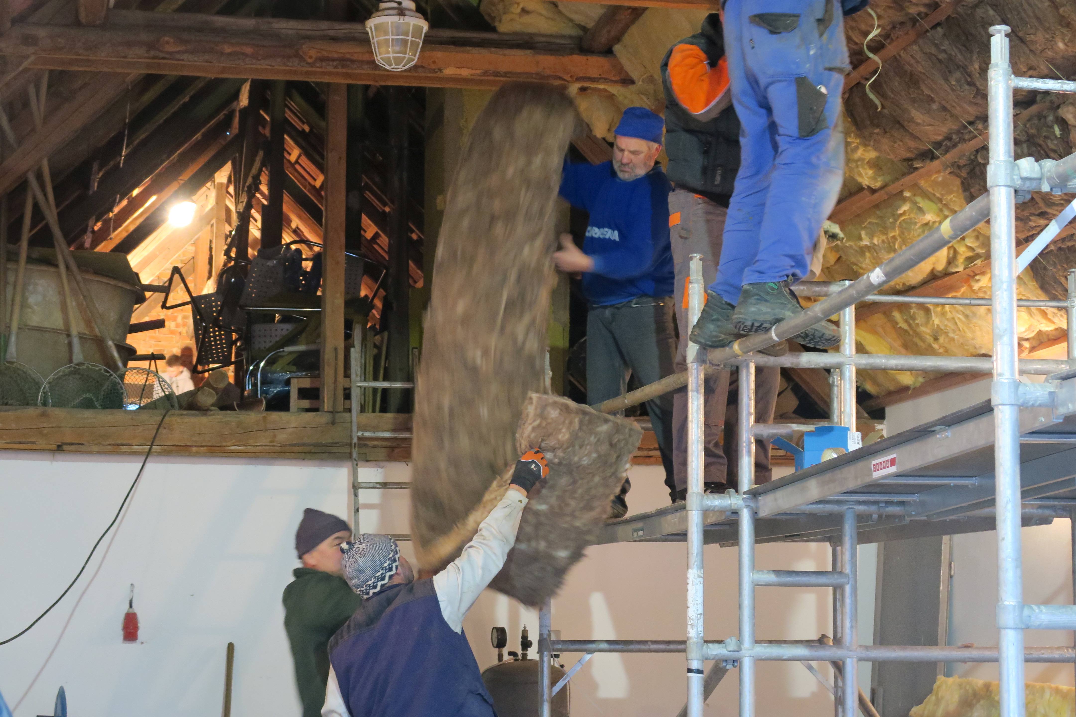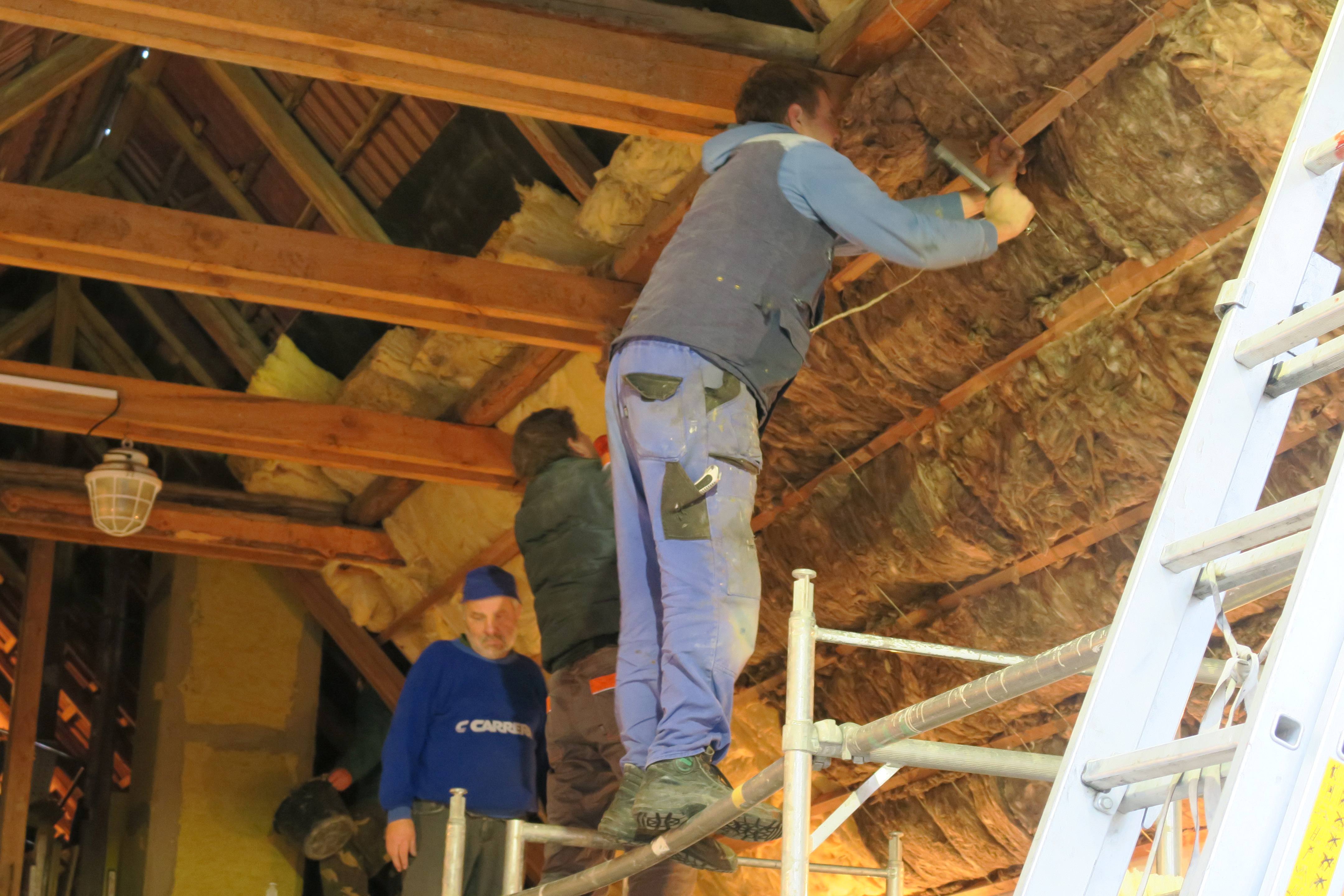 Zateplení nad cisternou, nová podlaha na půdě + kompletní úklid, nátěry podlah přízemních ploch, nový ponk, instalace zabezpečovacího systému.